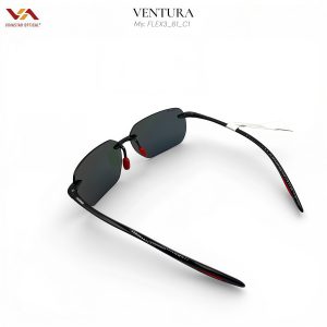 Kính Mát Ventura FLEX3_61_C1 – Thiết Kế Kính Khoan Không Viền Siêu Nhẹ, Gọng Đen Phối Đỏ Thể Thao, Tròng Polarized Xanh Lá Đơn Sắc Chống Chói Tuyệt Đối